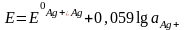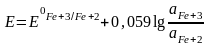 где Е0 – стандартный электродный потенциал, В; 0,059 – константа, включающая универсальную газовую постоянную (R), абсолютную температуру и постоянную Фарадея (F); n – число электронов, принимающих участие в электродной реакции; а(Ох) и a(Red) - активность окисленной и восстановленной форм вещества соответственно.