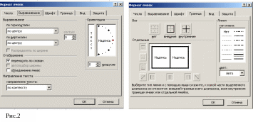 Чтобы подчеркнуть названия полей списка воспользуйтесь вкладкой Граница диалогового окна Формат ячеек. На рис.2 приведены примеры диалогового окна Формат ячеек.