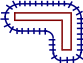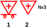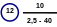 Характеристика маршрута ввода сил ГО морским (речным) транспортом (где: 12 - № маршрута; 10 - количество средств выделяемых для перевозки; 2,5 - количество тыс. чел.; 40 - количество перевозимой техники). Знак наносится на пересечении маршрута с границей зоны возможных разрушений. |