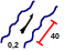 Участок береговой полосы, где возможен забор воды пожарными автонасосами (40-протяженность в м, 0,2 - скорость течения, м/с) |