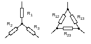 Рис. 4 Эквивалентные звезда и треугольник сопротивлений.