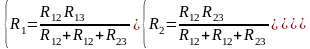 Формулы преобразования звезды сопротивлений в эквивалентный треугольник сопротивлений имеют вид: