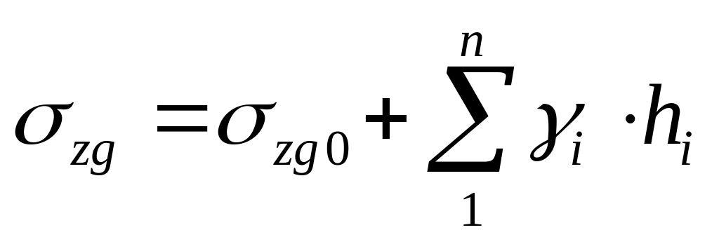 где n – число слоев грунта в пределах глубины z; i – удельный вес грунта i-го слоя, кН/м3, для грунтов ниже уровня грунтовых вод i определяется с учетом взвешивающего действия воды; hi – толщина или мощность этого слоя, м.