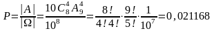 Задание 3. Найти вероятность того, что в 8-значном числе ровно 4 цифры совпадают, а остальные различны.