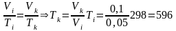 4. Определить конечную температуру азота, пользуясь уравнением состояния газа при изобарном расширении V/T = const: