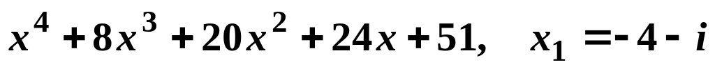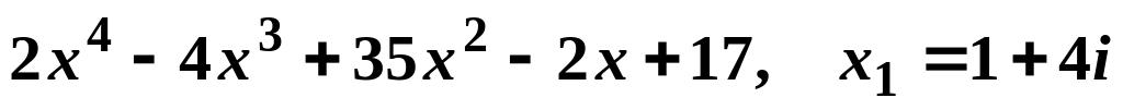 Разложить на линейные и квадратичные множители с действительными коэффициентами. Один из корней найти подбором: