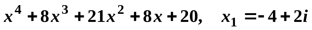 Разложить многочлен на квадратичные множители, если задан один из корней: