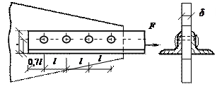 Определить число болтов и выполнить их расстановку на уголке присоединенного к узловой фасонке (см. рис.1) Болты диаметром d = 2 см. Уголок равнобокий, растягивается силой F = 320 кН.