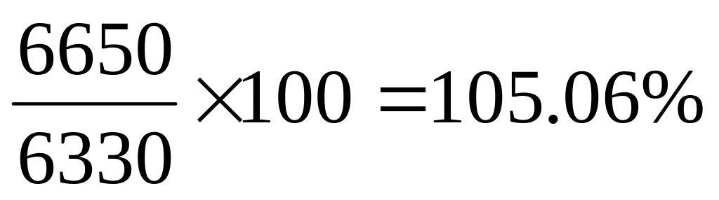 Плановое задание на будущее – 6650 кг, фактическое значение предыдущего периода – 6330 кг. Следовательно, относительная величина планового задания составит: