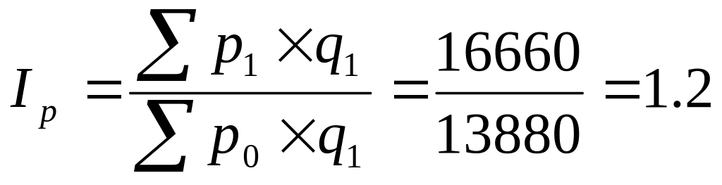 Общий индекс цен определяется по формуле: