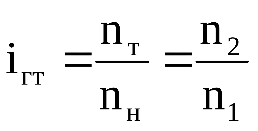 где MТ (М2), nТ (n2) – крутящий момент и частота вращения турбинного колеса гидротрансформатора, соответственно; Mн (М1), nH (n1) – крутящий момент и частота вращения насосного колеса гидротрансформатора, соответственно; Кгт , iгт – коэффициент трансформации и передаточное отношение гидротрансформатора; ηгт – КПД гидротрансформатора.