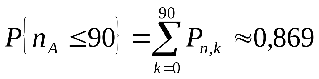 Пример 7.4. Машинистке требуется напечатать текст, содержащий 8000 слов, состоящих из четырех и более букв. Вероятность сделать ошибку в любом из этих слов равна 0,01. Какова вероятность, что при печатании будет сделано не более 90 ошибок?