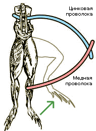 История «животного электричества» или, говоря современным языком, электрофизиологии начинается в 1780 г., когда итальянский физик и физиолог Луиджи Гальвани (1737–1798 г.г.) препарировал лягушку при работающей рядом электрофорной машине. Лапка лягушки иногда самопроизвольно сокращалась и жена Гальвани, Лючия, заметила, что это происходит тогда, когда проскакивает искра из электрофорной машины. Этот эффект наблюдается не всегда: если рука касалась скальпеля или одной из заклепок ножа, «открывая доступ электрическому флюиду», то лапка дергалась, если же нож держали за костяную ручку, то сокращений не было.