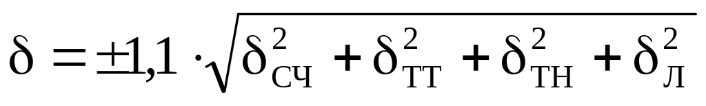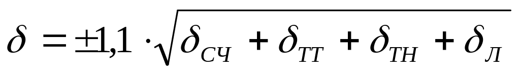 6. Погрешность измерительного канала активной электроэнергии определяется по формуле: