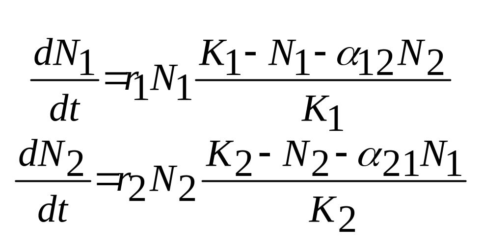 роста популяций обозначим соответственно