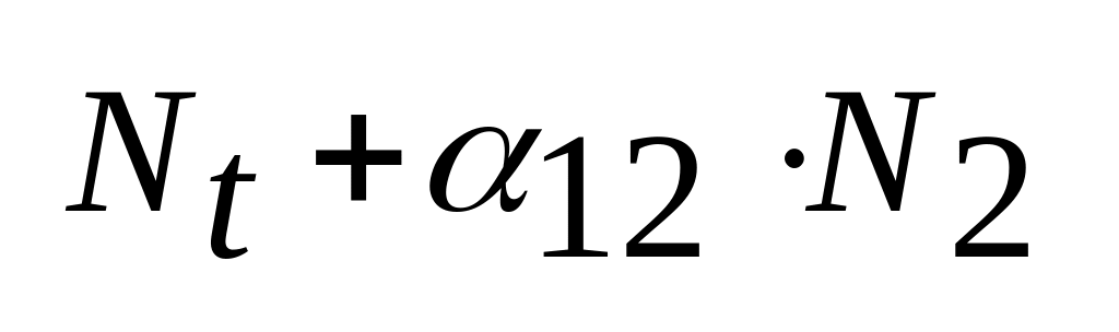 - численность первой популяции, а N2