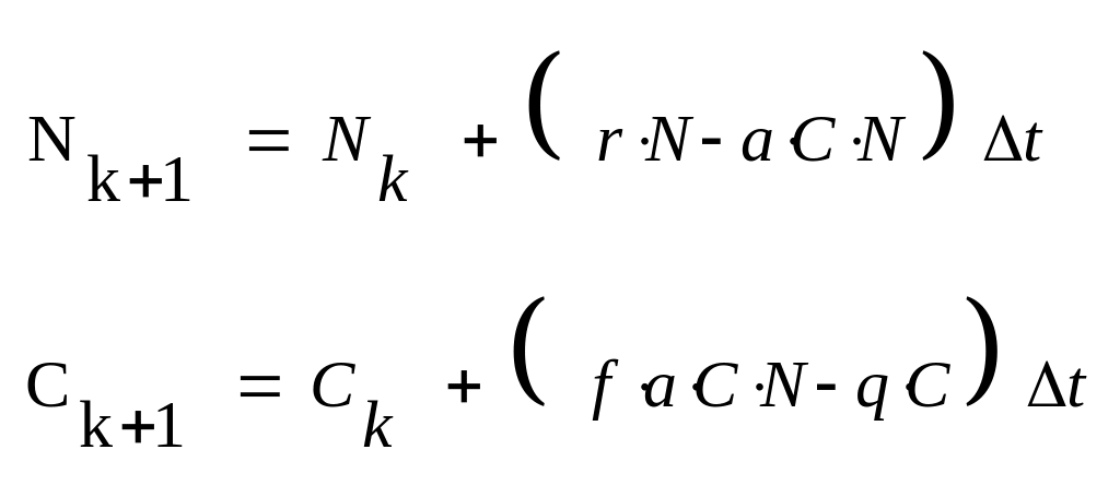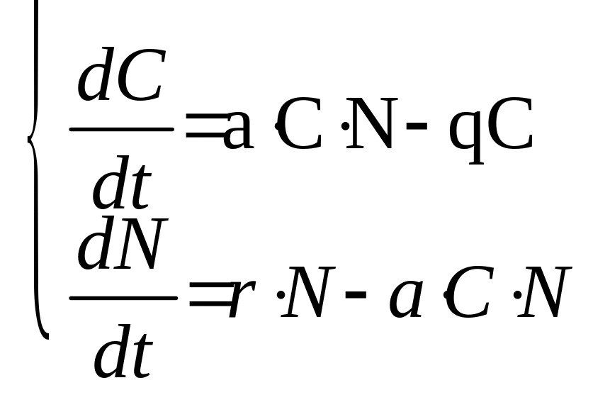 – численность популяции жертвы. С и N