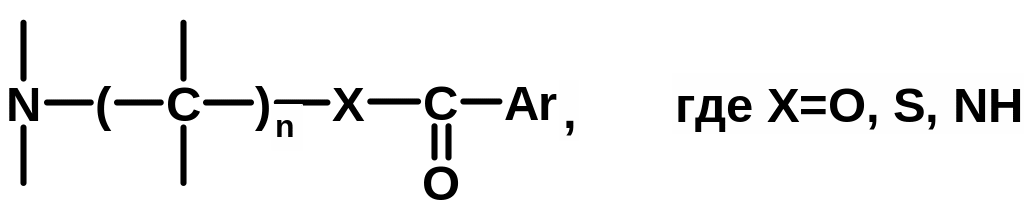 После дальнейшего изучения и систематизации исследований по созданию местных анестетиков, структуру анестезиофорной группы в общем виде можно представить следующим образом: