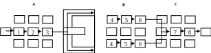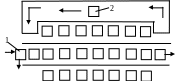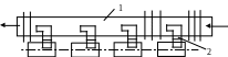 При несквозном перемещении загот. 1 проходят в стороне от расположения зон их обраб. В таких линиях исп. доп. загрузоч. устройства 2, например, автооператоры для перемещ.загот. с транспорта в приспособл. и обратно. Это усложняет линию. Чаще встречаются при обработке деталей типа тел вращения.
