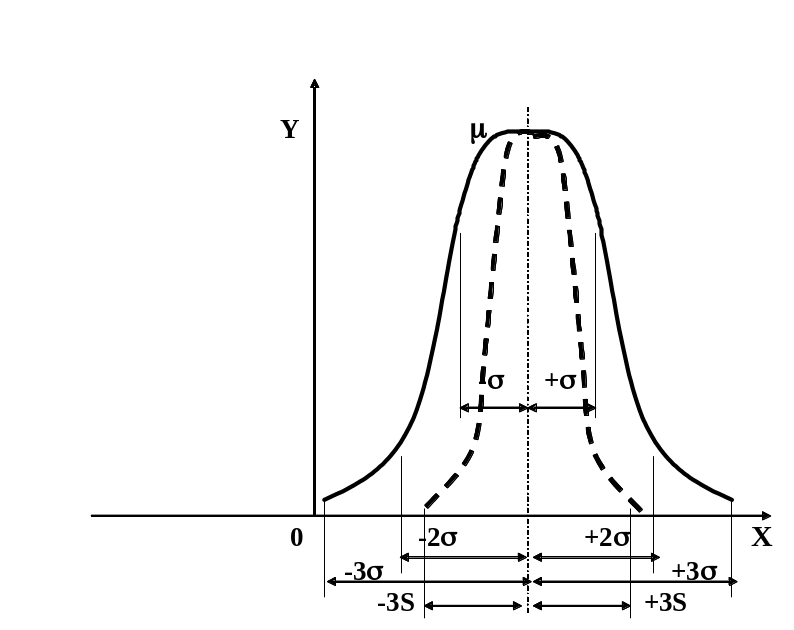 Следует отметить, что это же правило распространяется на отклонения среднего значения Хср ( μ ). Оно также колеблется в некоторой области на три значения среднего квадратического отклонения среднего значения S в обе стороны, и в этой области заключено 99,73 % всех значений среднего значения.