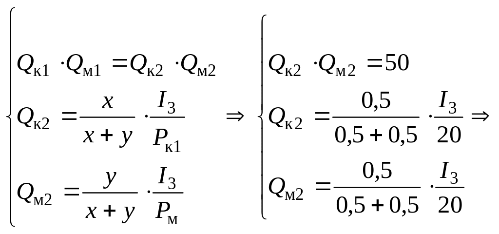 Для определения параметров нового равновесия, решим систему уравнений, используя формулы (2.3), (2.4):