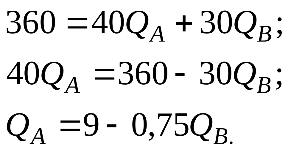 Задача 2.3. Доход потребителя составляет I = 360 ден. ед. и целиком тратиться на два товара: А и B. Цена товара PА = 40 ден. ед., цена товара PB = 30 ден. ед. Выполните задания: