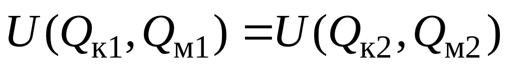 Решение. Кривая безразличия – это линия, все точки которой показывают наборы двух товаров, которые обладают одинаковой суммарной полезностью для потребителя.