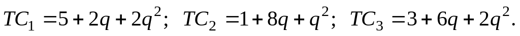 Задача 3.8. Известны функции общих издержек трёх различных фирм, действующих в условиях совершенной конкуренции: