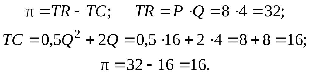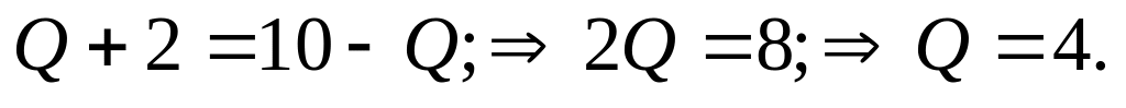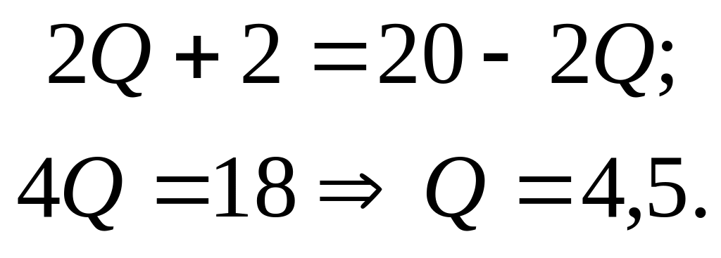 При объёме производства и реализации продукции Q = 4,5 монополия будет максимизировать свою прибыль. Определим монопольную цену реализации продукции: