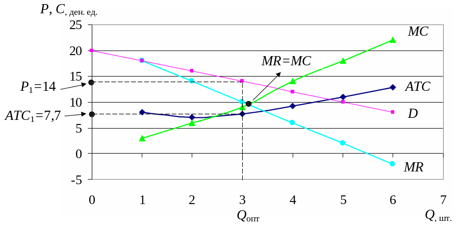1 На основании таблицы построим графики МС, МR, D, ATC (рисунок 4.1).