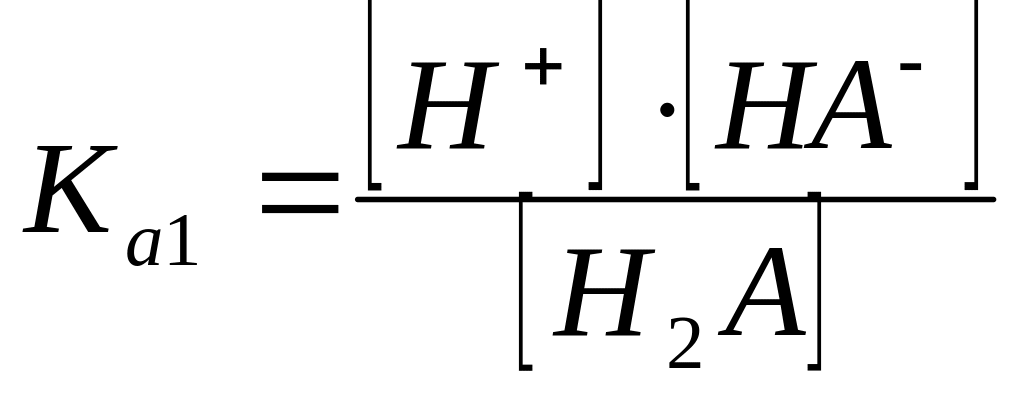 2. Слабые многоосновные кислоты (HnA) в водных растворах диссоциируют ступенчато и каждой ступени диссоциации отвечает своя ступенчатая константа кислотной диссоциации Kai. При этом величина каждой последующей константы превышает значение предыдущей. Например, для двухосновных слабых кислот Н2А процессы диссоциации выглядят следующим образом: