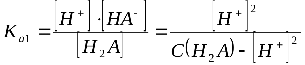 Равновесную концентрацию аниона [А2-] находят из второй константы диссоциации кислоты: