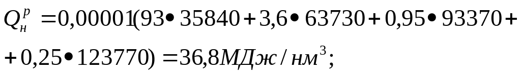 35840, 63730, 93370 и т.д. – низшая теплота сгорания горючего компонента – газа, кДж/м³.