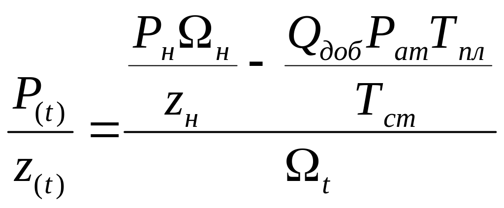 Подставив оба выражения в предыдущее и решив его относительно Pt/zt, получим выражение для определения текущего средневзвешенного пластового давления в зависимости от отбора газа: