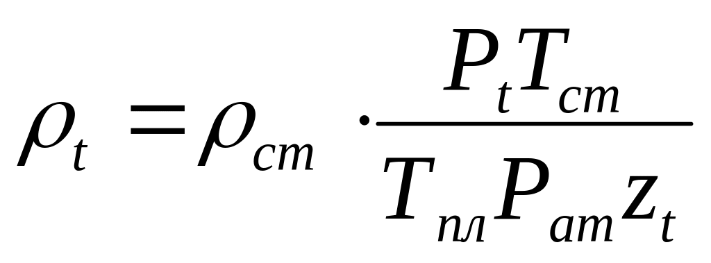Плотность газа в пластовых условиях определяется по уравнению состояния реального газа: