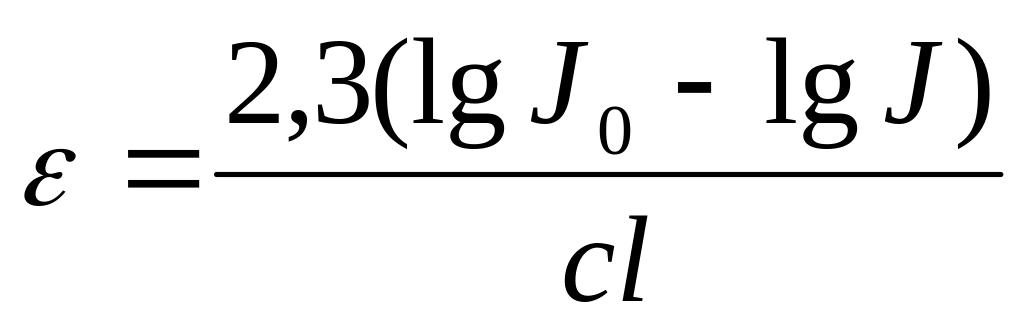РЕШЕНИЕ Для вычисления молярного коэффициента поглощения применим уравнение Бугера - Ламберта - Бера в логарифмической форме (4.6)