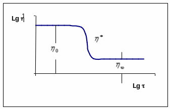Вязкость ηо называется наибольшей ньютоновской вязкостью. На этом участке течению подвергается система с неразрушенной структурой.