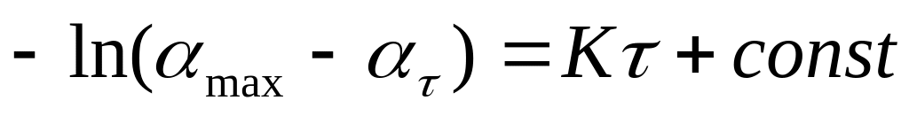 По тангенсу угла наклона прямолинейной зависимости ln(αmax – ατ) от времени можно определить константу скорости набухания.