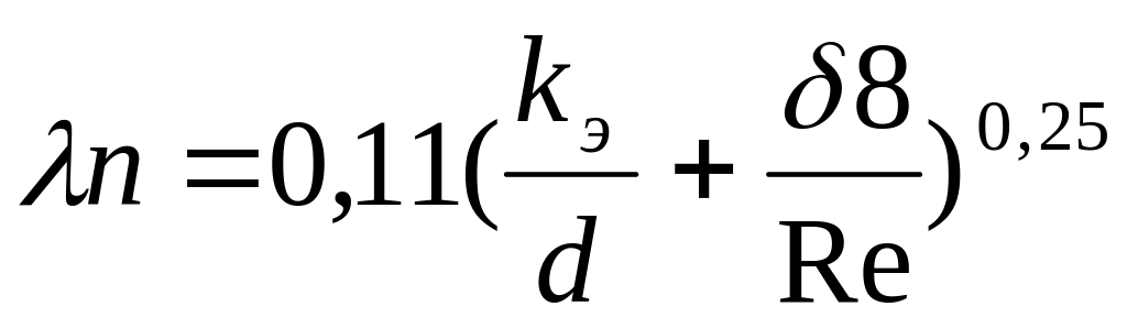 У перехідній області гідравлічних опорів, що характеризується Rekэ/d=23…560, рекомендується формула А.Д. Альтшуля