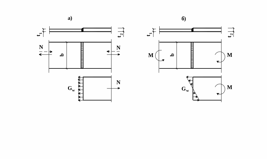 Задача 3. З умови міцності зварного з'єднання втавр визначити максимальну несучу здатність при роботі на зсув (рис. 3.1, а). Консоль має товщину tк = 10 мм, ширину b = 150 мм, приварюється до полиці колони, товщина якої t = 12 мм. Матеріал конструкції сталь марки С275. Зварка напівавтоматична в середовищі вуглекислого газу із застосуванням зварювального дроту марки Св-08Г2С діаметром 2 мм, положення шва “у човник”. Катети швів прийняти мінімальними.