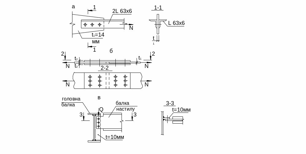 Задача 4 Перевірити міцність з’єднання на болтах що знаходиться під дією сили N = 125 кН (рис. 5.1, а). Кількість болтів n = 4. Болти класу 5.8 діаметром d = 16 мм.