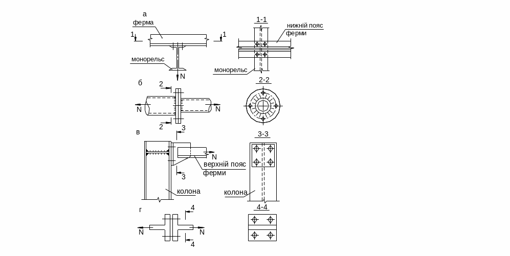 Задача 6. Визначити діаметр болтів у з’єднанні (рис. 5.1, б), що знаходиться під дією сили N = 580 кН. Кількість болтів n = 4. Болти класу 8.8.