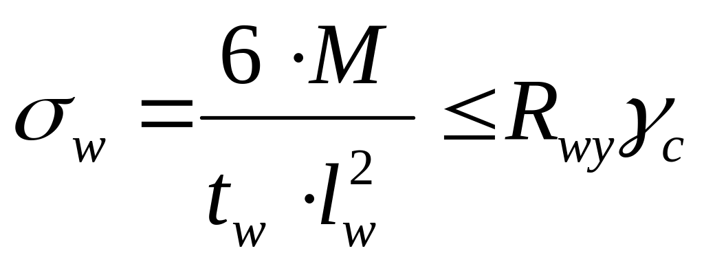де tw - товщина шва; tw= t = 8 мм = 0,8 см; довжина шва; при зварюванні без виводу кінців шва за межі стику lw = b - 2tw = 500 - 2·8 = 484 мм = 48,4 см; Rwy – розрахунковий опір шва, при візуальному контролі Rwy =0,85Ry. Для сталі С255 Ry = 240 МПа (табл. А.1 додатка А). Rwy =0,85·240 = 204 МПа = 20,4 кН/см2.