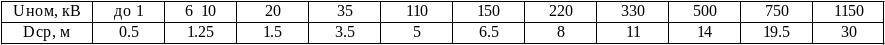 Усредненные среднегеометрические расстояния между фазами воздушных линий электропередачи