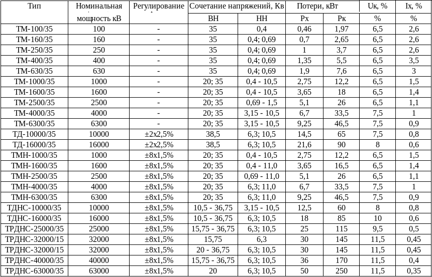 Остальные трансформаторы напряжением 35 кВ имеют РПН на стороне ВН не менее 8х1,5%, СН и НН без ответвлений.