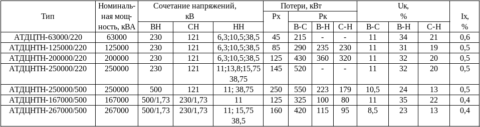 3. Автотрансформаторы АТДЦТН-250000/500/220 имеют в линии СН 6х2,06 %.
