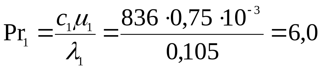 1 = 1546 кг/м3; 1 = 0,105 Вт/(мК); 1 = 0,7510-3 Пас; с1 = 838 Дж/(кгК).