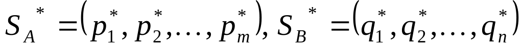 Эти векторы или наборы вероятностей выбора чистых стратегий называются смешанными стратегиями игроков.