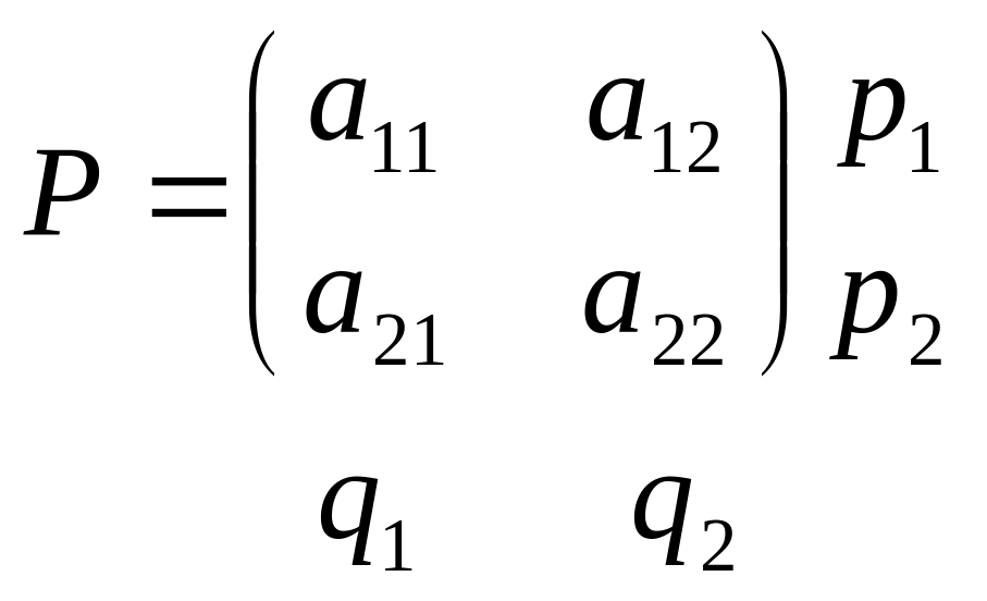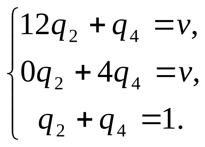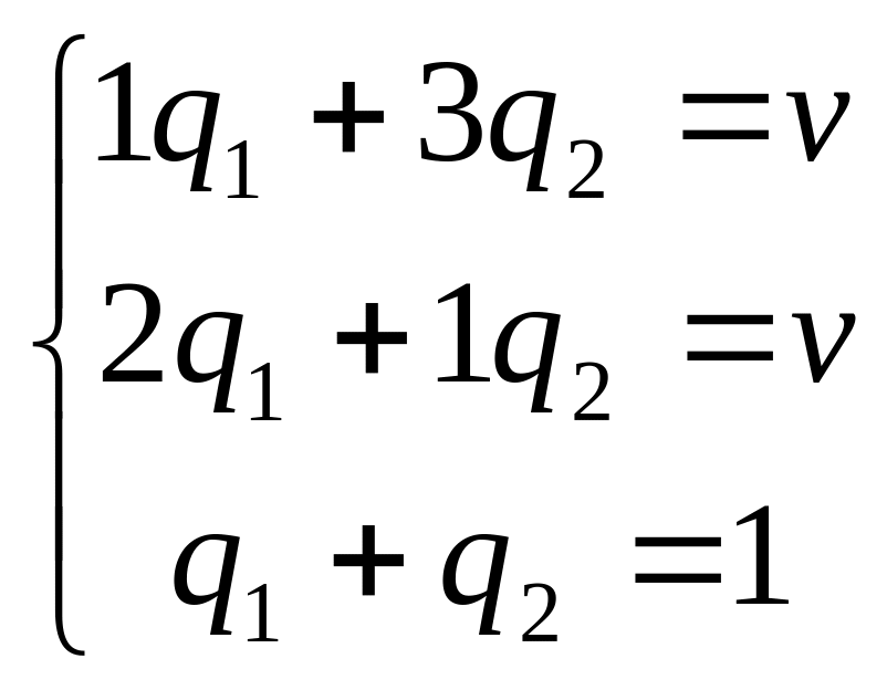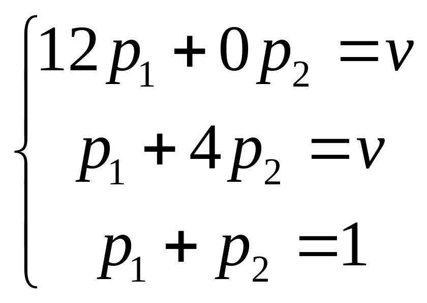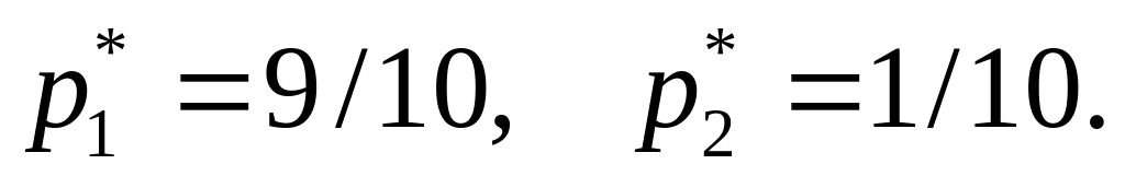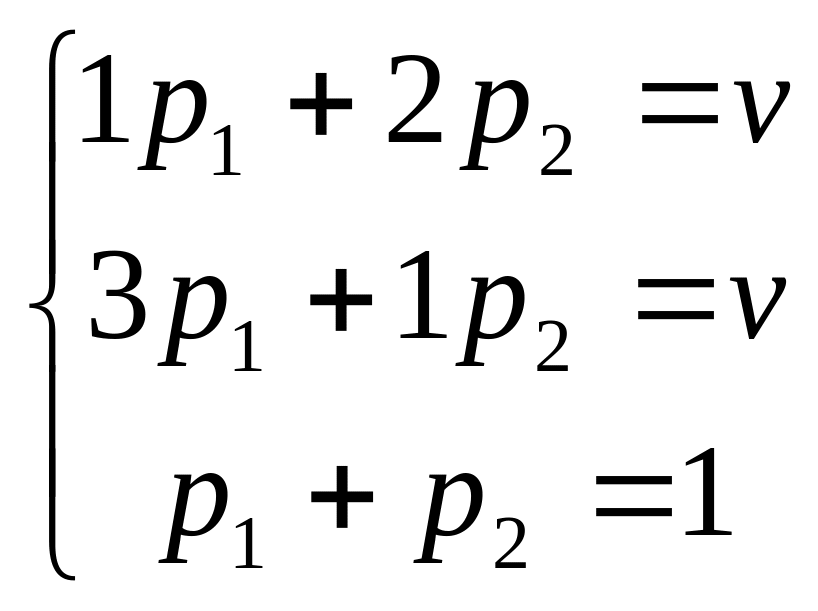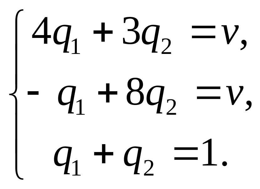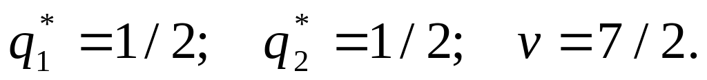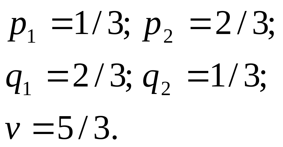 Эта система решается очень просто по той причине, что в ней можно из третьего уравнения выразить одну неизвестную величину через другую. Решение данной системы дает значения оптимальной смешанной стратегии первого игрока и соответствующую ей цену игры.