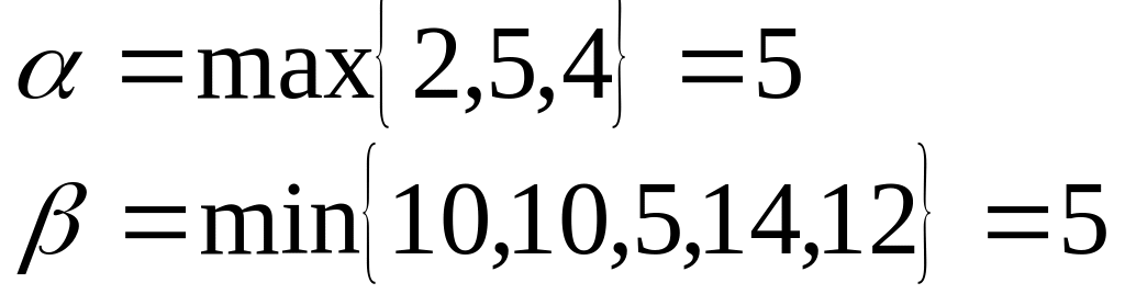 2. Определить верхнюю и нижнюю цены игры и проверить, имеет ли игра седловую точку. Если седловая точка есть, то соответствующие ей стратегии игроков будут оптимальными, а цена игры совпадает с верхней (нижней) ценой.